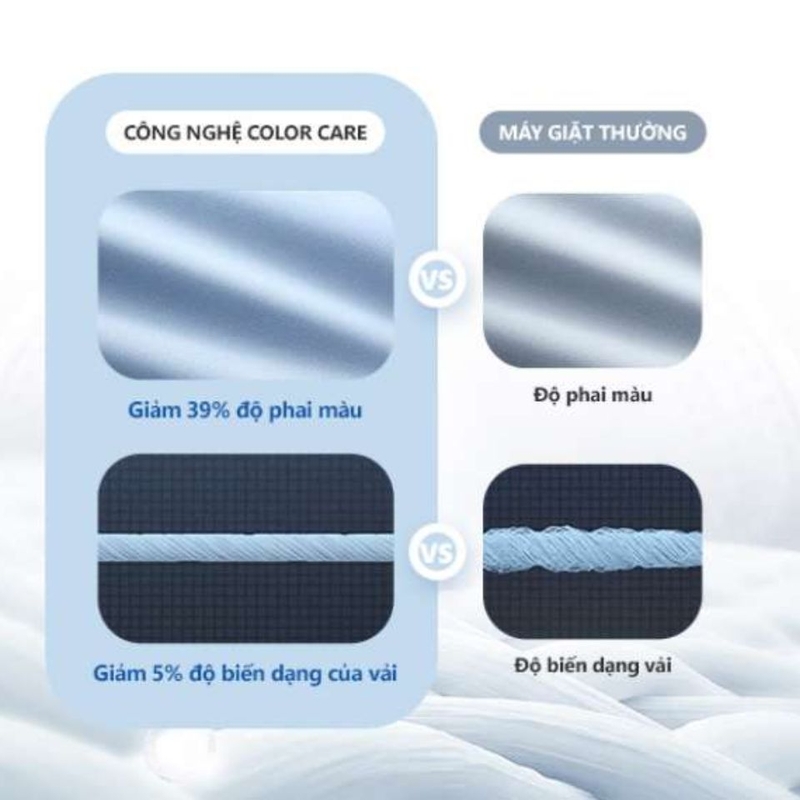 Một trong những công nghệ nổi bật của máy giặt cửa trước Toshiba Inverter 8.5 kg TW-BK95S3V (SK) chính là Color Care. Công nghệ này giúp giảm độ phai màu đến 39% và hạn chế sự biến dạng của sợi vải đến 45% so với các máy giặt thông thường trên thị trường. Nhờ đó, quần áo sẽ luôn giữ được trạng thái mới mẻ và bền bỉ trong quá trình sử dụng. Hơn thế nữa, Color Care còn tiết kiệm đến 70% điện năng tiêu thụ, giúp giảm thiểu chi phí sinh hoạt hàng tháng.