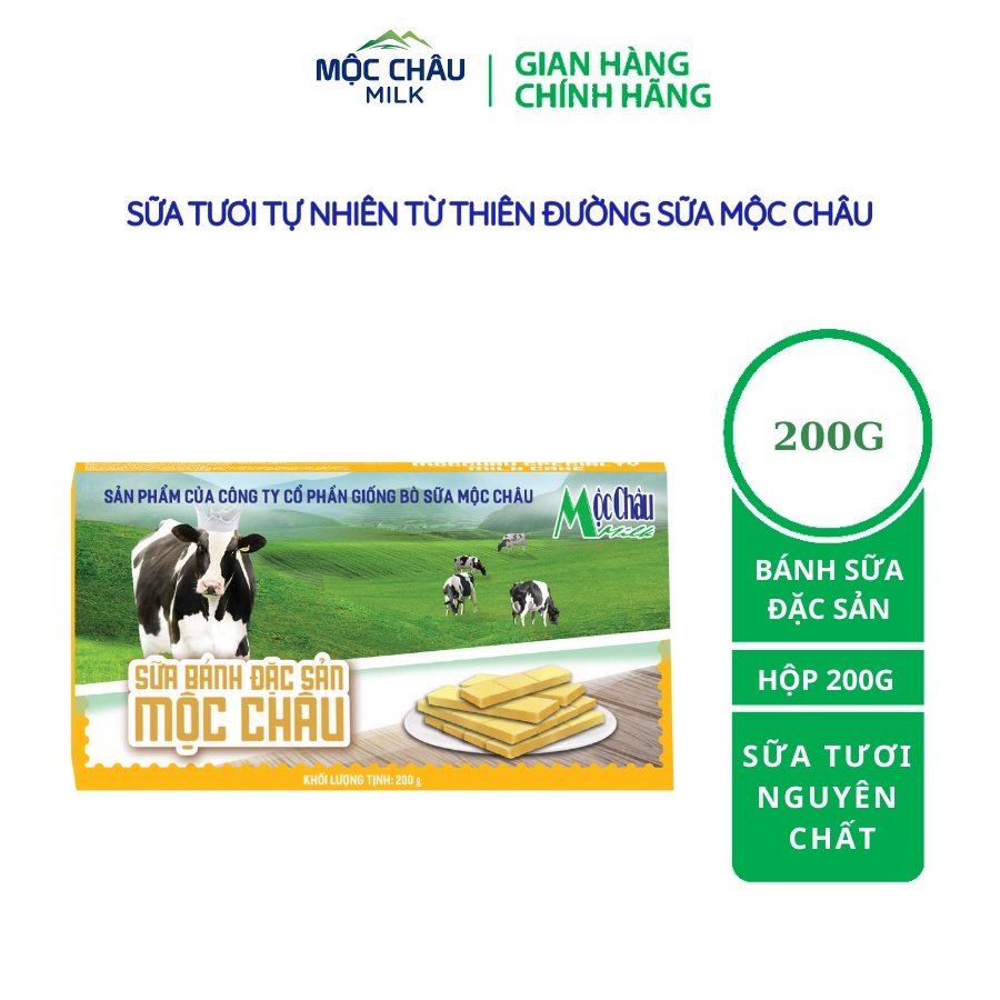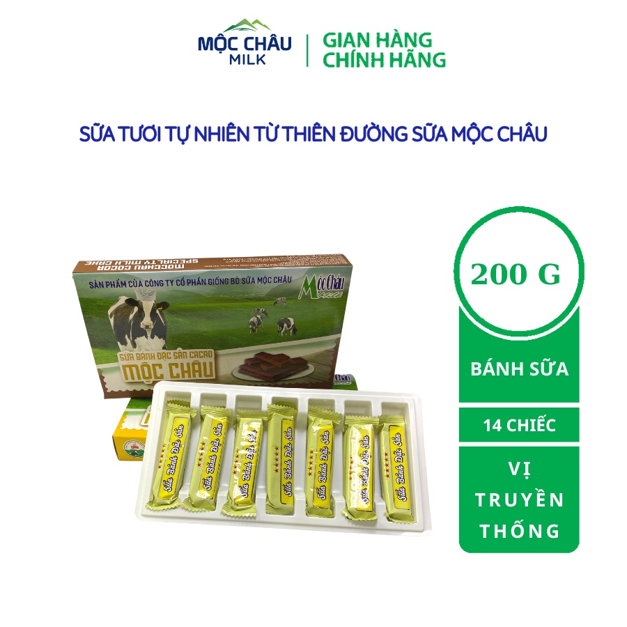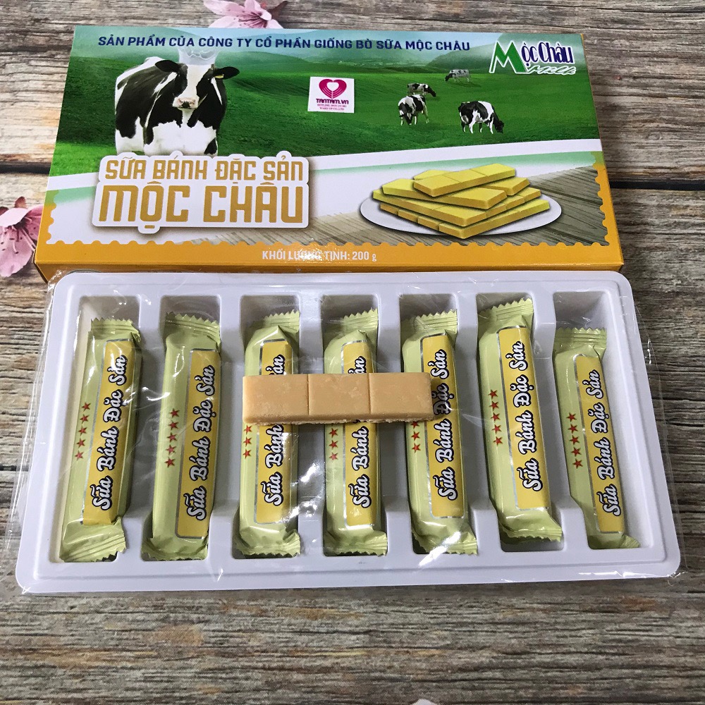 – Sản phẩm Bánh sữa Mộc châu Milk được đóng gói/hộp có khối lượng tịnh 200g, gồm 14 thanh bánh sữa